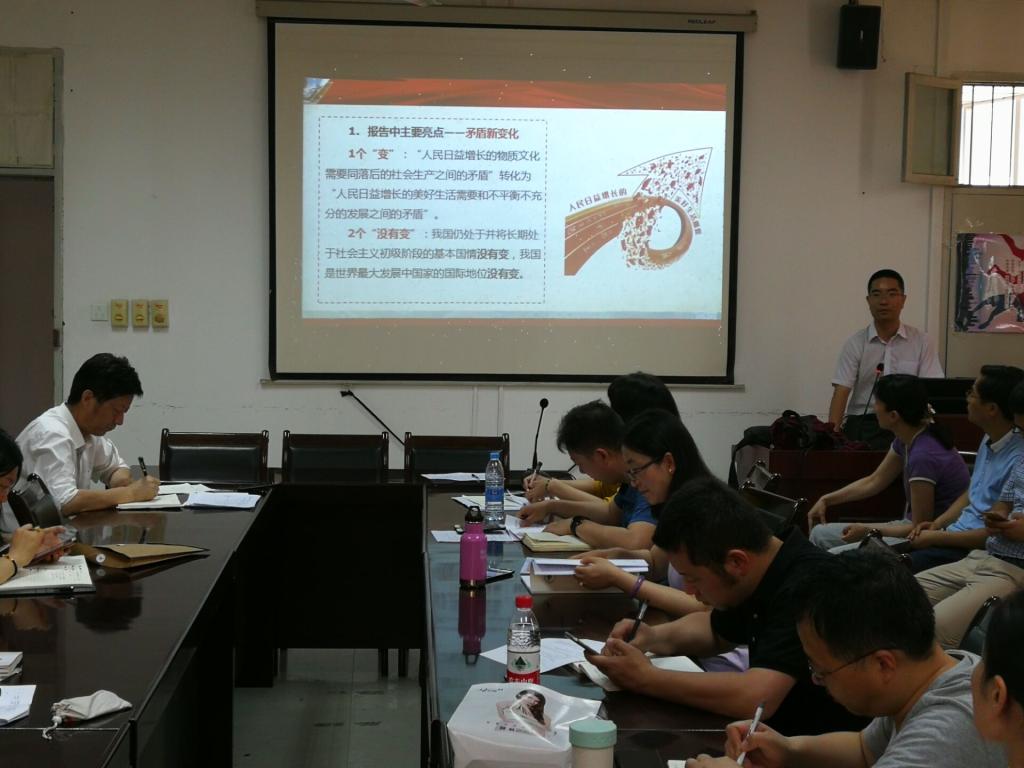 6月6日下午,英国上市公司365在雁塔校区行政楼会议室召开十九大精神和新党章宣讲会,计算机公司党委副书记陈伟伯做宣讲报告。