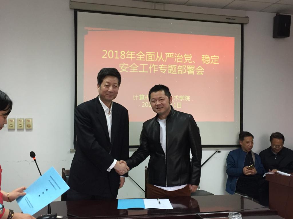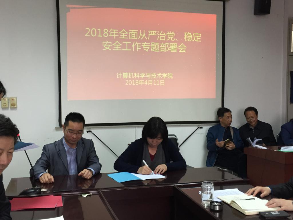 会上,签订2018年全面从严治党和综合治理安全稳定责任书。作为落实全面从严治党和安全稳定责任的重要举措,此次签订目标责任书将进一步明确各岗位党建工作职责,进一步强化党员干部责任意识。加强安全稳定工作的重要性和责任意识。