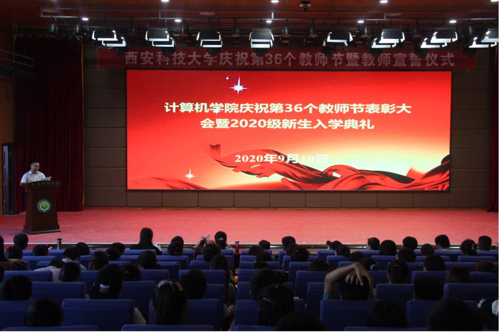 9月10日下午,英国正版365官方网站英国上市公司365在临潼校区骊山校园煤炭科技中心举行庆祝第36个教师节表彰大会暨2020级新生入学典礼。公司党委书记冯爱玲,经理李占利,党委副书记陈伟伯,副经理马天、于振华出席大会。各系部主任、教工党支部书记、教师代表、全体行政管理干部、学工干部,2020级全体本科、研究生新生参加大会。陈伟伯主持大会。