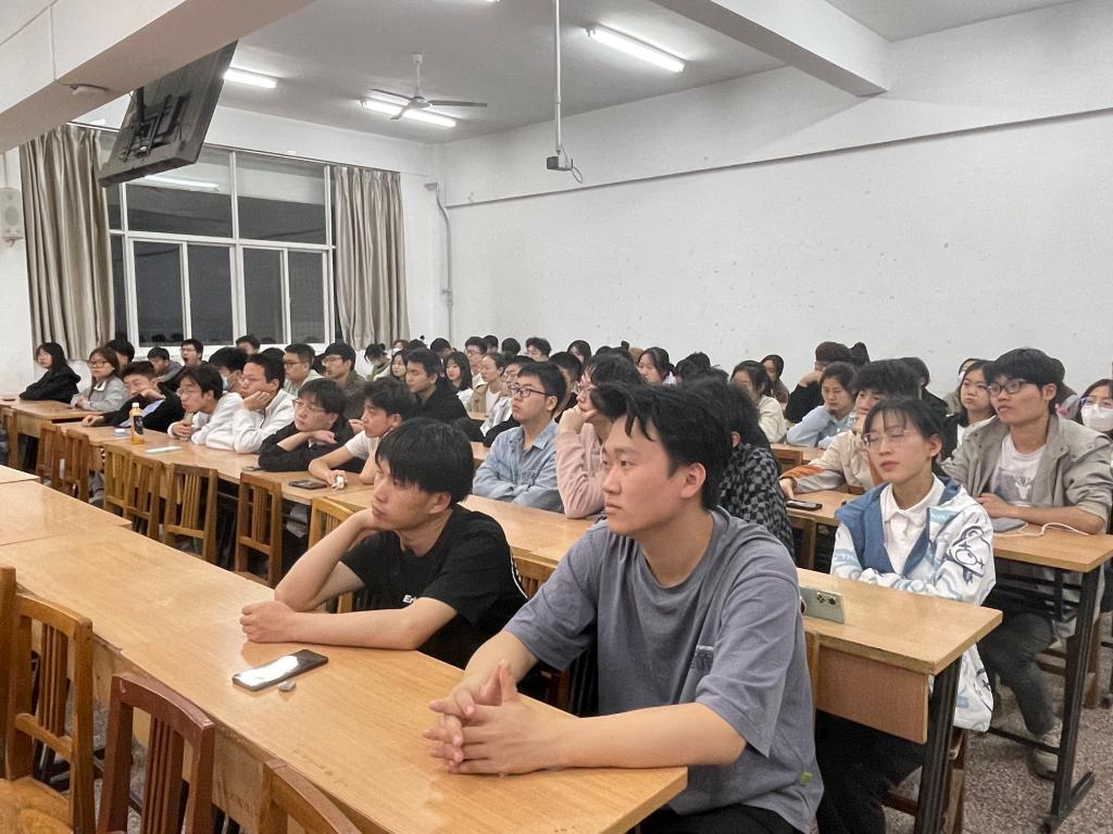 公司巡讲报告团成员刘柯宏、葛玥、宋邱雨分别以《我的大学,一往无前》、《心有所向,无问东西》、《心怀热爱,不懈前行》为题从学业成绩、竞赛创新、志愿服务、职业规划等方面结合自身学习经历和体验进行了分享,现场气氛热烈。
