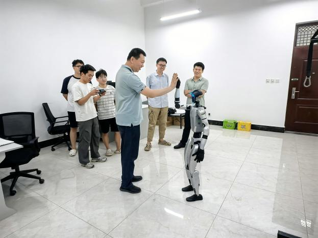 在创新创业大楼,李绥波亲切慰问坚守岗位的青年教师及科研团队成员,详细了解了人形机器人、机器狗等科研项目开发利用的进展情况,就科研创新、教学提升、团队建设等内容进行了深入探讨,鼓励青年教师再接再厉,勇攀科研高峰。