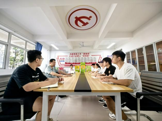 在公司教学楼,李绥波慰问了正为科研团队组会做准备的师生们。尽管室外暑气蒸腾,会议室里师生却丝毫不受影响,个个劲头十足:有的俯身案头核对数据,笔尖在记录本上飞快游走;有的围站在电脑旁调试设备,时不时低声交流几句;有的对着电脑屏幕修改方案,手指在键盘上敲击得噼啪作响……大家分工明确,有条不紊地做着组会前的最后冲刺。