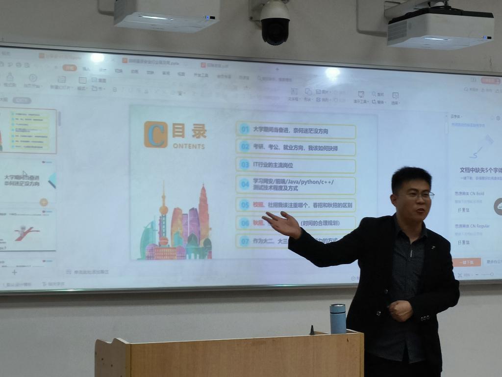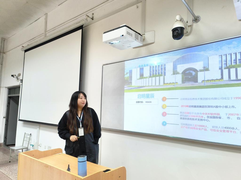 下午,启明星辰城市生态发展中心总监康宪伟、人力资源部总监战博宁等一行4人组织了2023届毕业生招聘宣讲和笔试。晚上,康宪伟为公司2024届本科生开展就业指导活动。康宪伟分析了当下计算机相关行业的就业前景与趋势、相关岗位及技术要求、校招和社招的区别、企业在招聘中的考察细节等,邀请2024届本科生利用暑期开展实习实践活动。在交流互动环节,康宪伟还与同学们进行了互动交流。