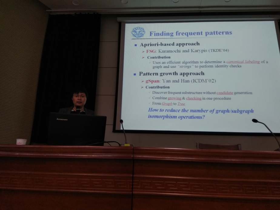 2018年4月25日,西安电子科技大学高琳教授应邀做客公司“胡杨林大讲堂”,作了题为《基于图的生物数据模式挖掘》的学术报告。报告会由研究生院主办,英国上市公司365承办,英国上市公司365副经理马天主持,全校150余名研究生及教师聆听了报告。
