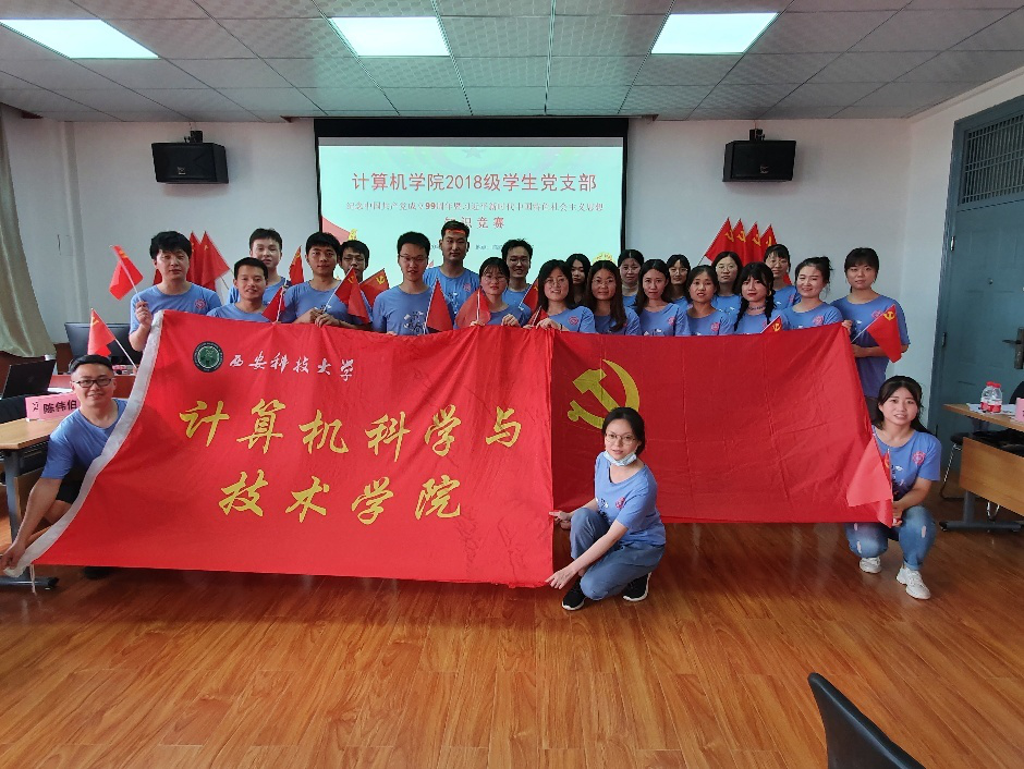2020年是中国共产党成立99周年,为隆重庆祝党的华诞,铭记党的历史,充分展示员工党员的爱国主义热情以及昂扬的精神面貌,7月1日,2018级员工党支部在临潼校区15教512室开展庆祝建党99周年知识竞赛活动,活动由2018级员工党支部书记李宇绒主持,计算机公司党委书记冯爱玲、副书记陈伟伯、副经理马天及2018级员工党支部全体党员参加此次活动。