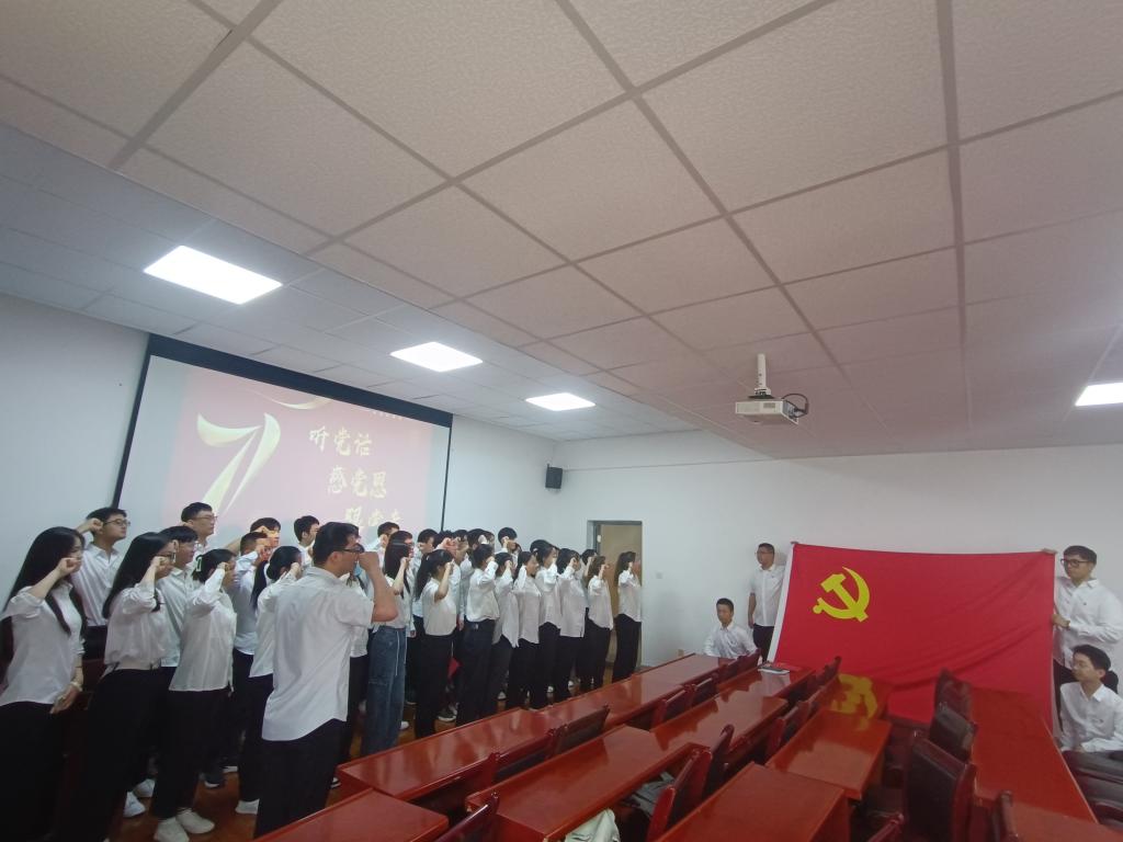 7月1日,2020级员工党支部组织开展“感党恩,听党话,跟党走”庆七一主题党日活动,以多种形式为党庆生,向党致敬。活动由2020级员工党支部书记宋永强主持。