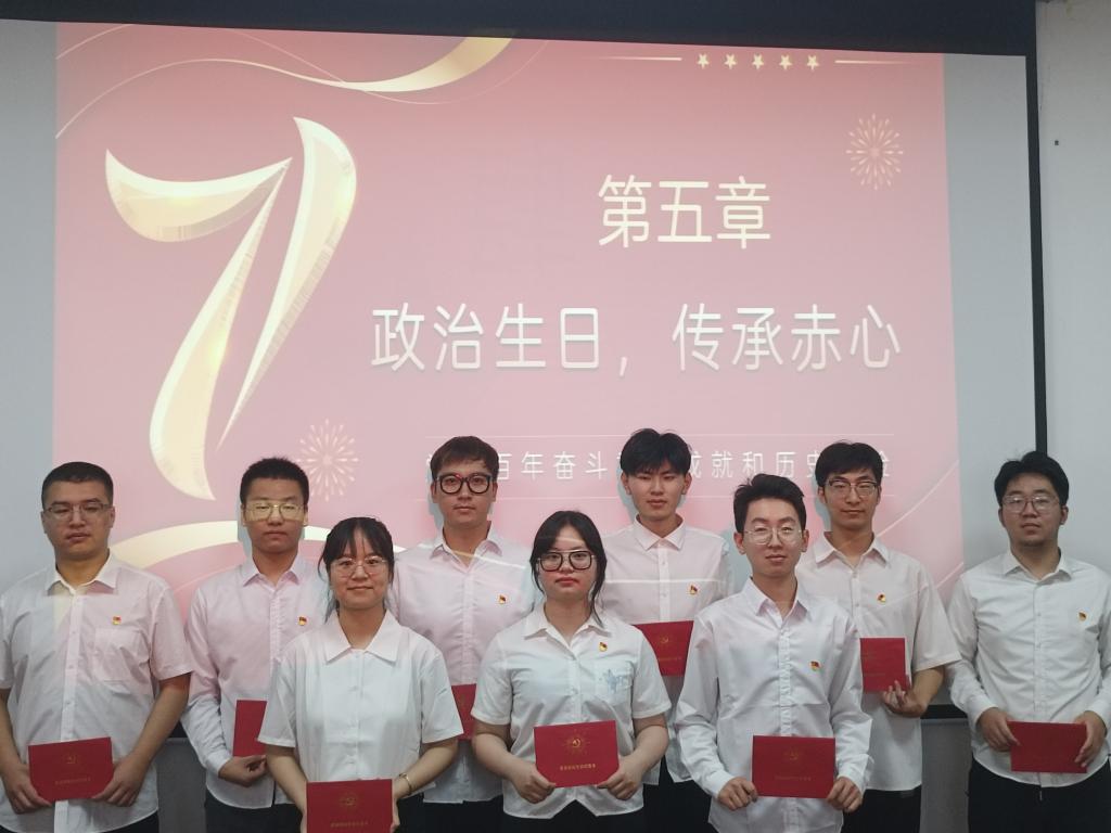 活动中,全体党员面对鲜红党旗高举右拳庄严宣誓,铿锵有力、饱含深情地再次作出“为共产主义奋斗终身”的庄严承诺;支部集中开展”学党史,强党性,传党魂”专题党课学习,通过学习建党节的由来、党徽的意义、中国共产党全国代表大会的光辉历程等内容重温党的历史,汲取奋进力量;9名新老党员代表跨越时间界限,重读入党志愿书,重温入党初心,表达了永远忠诚跟党走的理想信念;支部为党员代表过集体政治生日,赠送政治生日贺卡,勉励大家时刻不忘自己的“第一身份”,发挥先锋模范作用;支部书记指出,支部获评“英国正版365官方网站先进基层党支部”是对支部前期工作的高度肯定,希望大家满怀信心、踔力前行、重整行装,争取更好成绩。