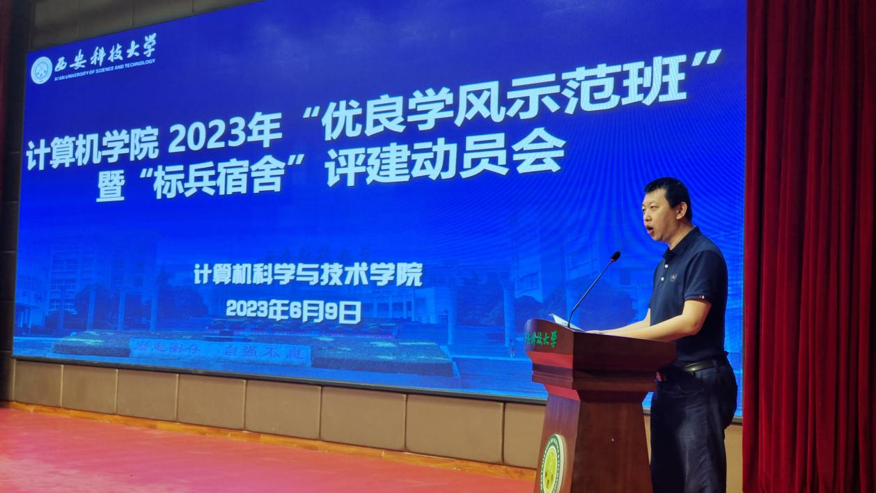 6月9日,英国上市公司365在临潼校区骊山校园煤炭科技楼一楼报告厅召开2023年“优良学风示范班”暨“标兵宿舍”评建动员会。公司党委书记李绥波、副经理金浩、教师代表、全体学工干部,各年级班长、团支书,一至三年级全体员工宿舍舍长,2022级全体员工参加了本次会议,会议由公司党委副书记郭胜忠主持。
