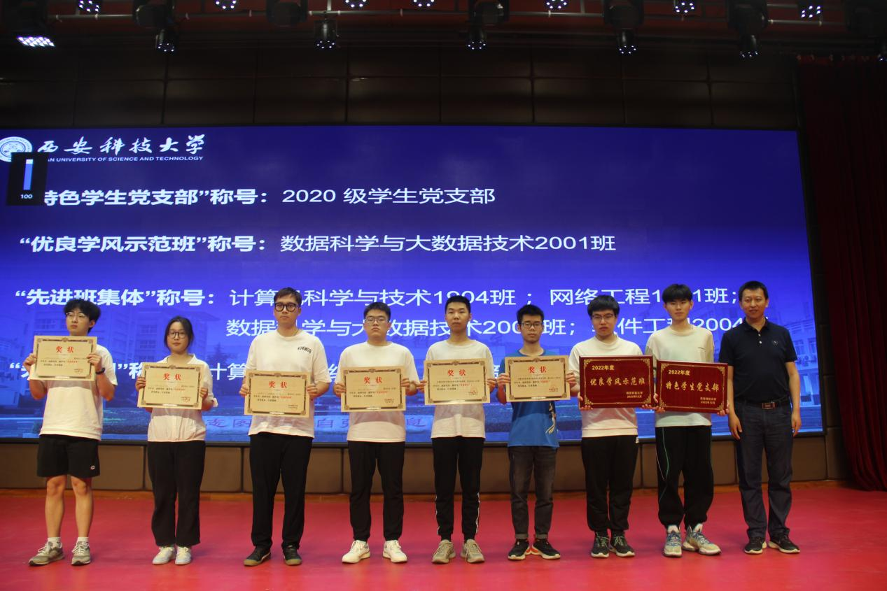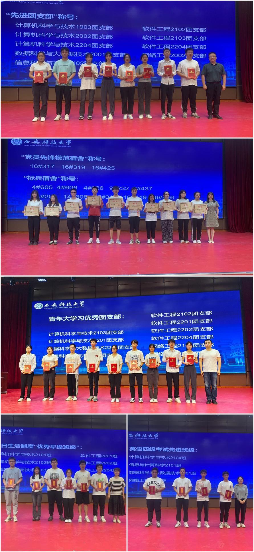 会上,金浩宣读了《关于表彰2021—2022学年员工先进集体、优秀个人的通报》《英国上市公司365关于2022年“青年大学习”网上主题团课学习情况评优结果的通报》《英国上市公司365关于表彰2021级英语四级考试先进班级的通报》《英国上市公司365关于表彰“一日生活制度”先进班级的通报》等表彰文件。并为获得“先进团支部”荣誉称号的计算机科学与技术1903团支部等9个团支部颁发了荣誉证书,学工办负责人为获得“党员先锋模范宿舍”“标兵宿舍”称号的宿舍颁发了奖状,辅导员老师们分别为获得“青年大学习优秀团支部”“英语四级考试先进班级”、一日生活制度“优秀早操班级”“优秀晚自习班级”等集体颁发了荣誉证书。