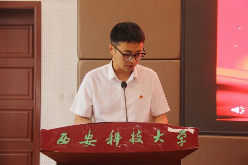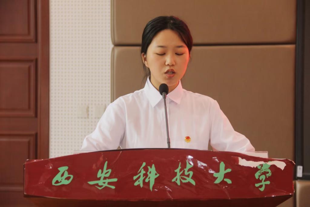 校员工会主席团成员李凯宣读了大会倡议书,倡议与会代表作为新时代青年要自信自强、建功立业,彰显新时代中国青年的使命担当;要敢想敢为、善作善成,贡献新时代好青年的青春力量;要凝心聚力、笃行不怠,谱写新时代青年学子的绚丽华章。