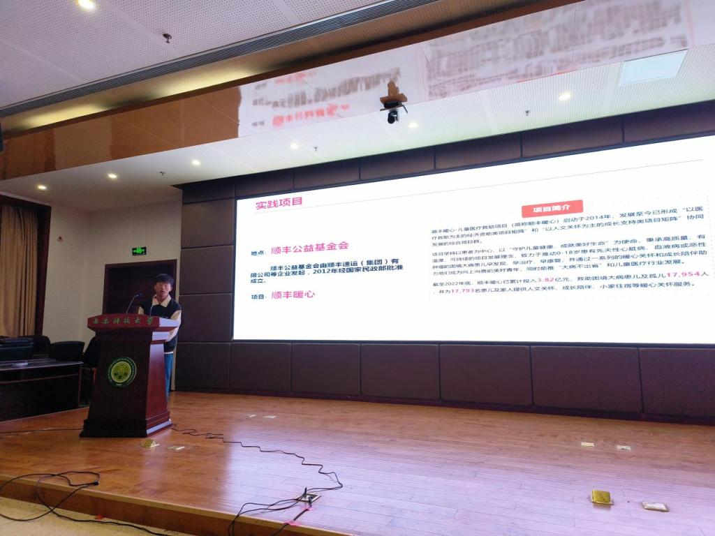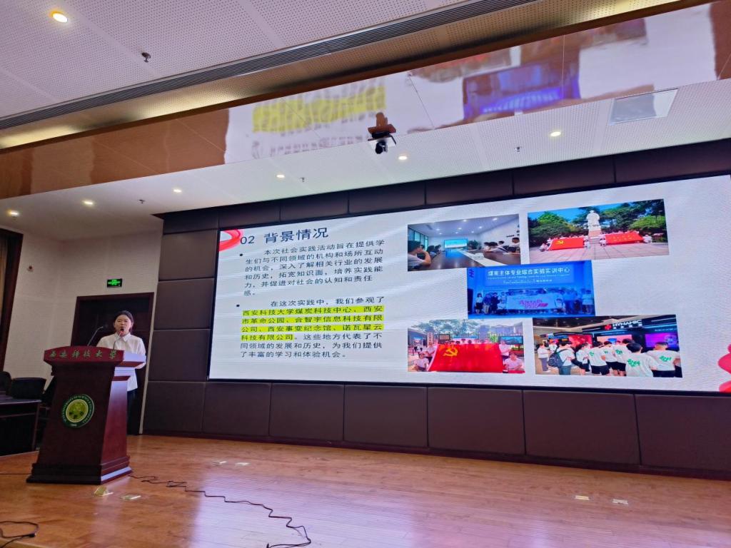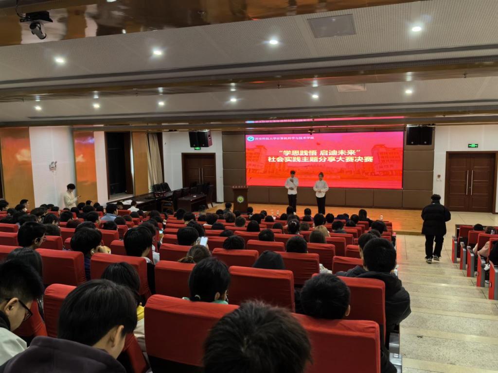 在比赛现场,同学们深入挖掘实践本质,分享个人在暑假实践期间的所思、所闻、所感,通过自身的实践经历,向大家分享专业知识技能在实习公司工作中的应用,计算机类专业老员工的就业途径与方向选择,老员工与乡村振兴,社会公益事业工作感悟以及红色教育之旅等各类社会实践内容。
