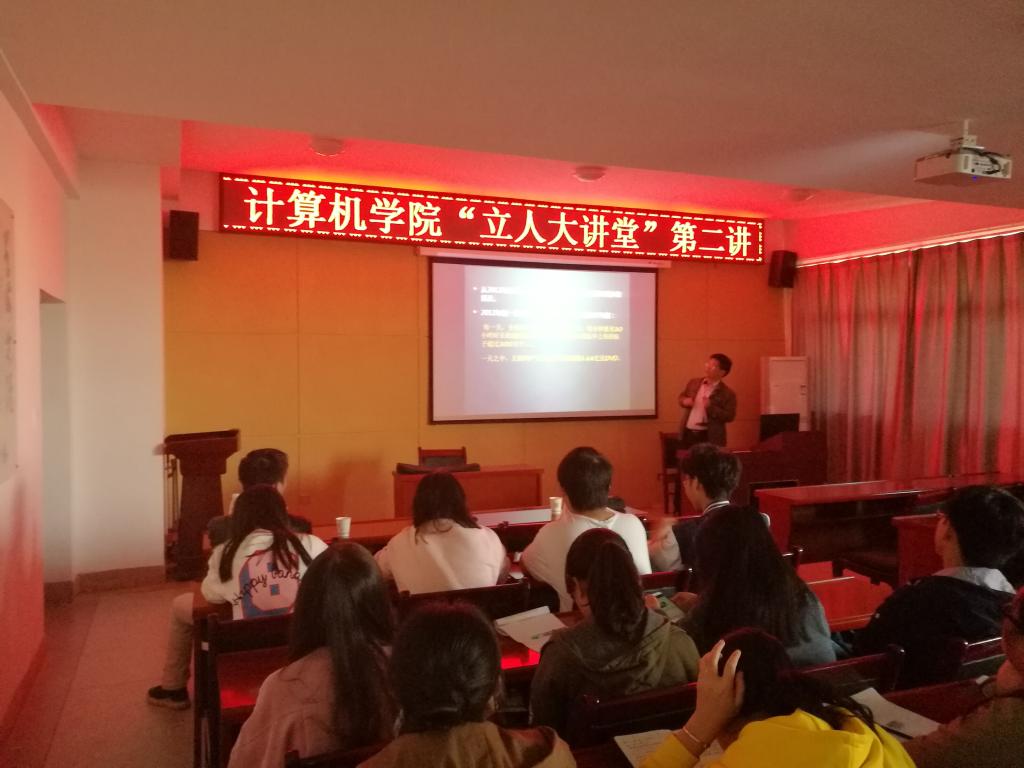 10月26日下午,英国上市公司365在临潼校区16教323会议室举办“立人大讲堂”第二讲。计算机公司党委书记副书记陈伟伯、相关辅导员及各年级员工代表100余人参加了此次讲座。